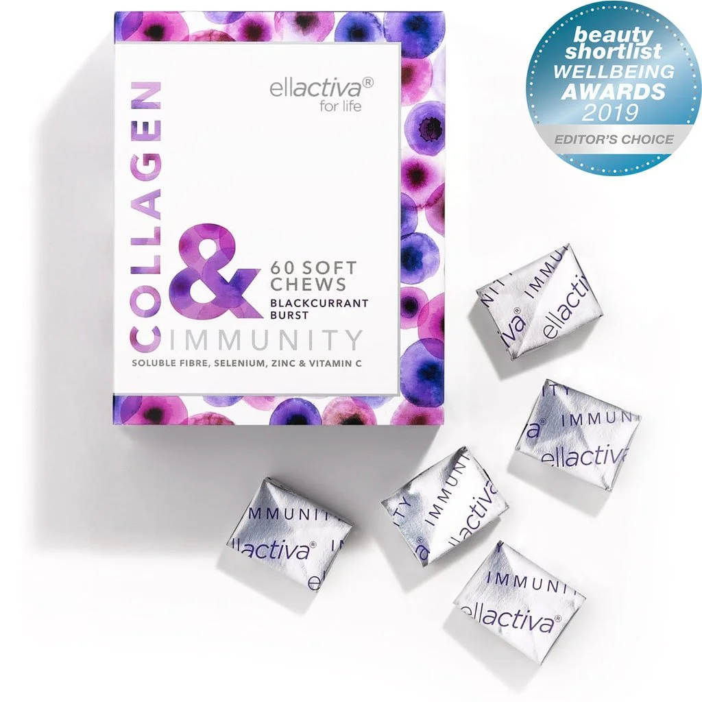 Deliciously juicy blackcurrant-flavoured soft chews formulated with BIOACTIVE COLLAGEN PEPTIDES®, a readily absorbable form of collagen. Uniquely combined with inulin fibre, plus zinc, selenium and Vitamin C to also help support the normal functioning of the immune system.