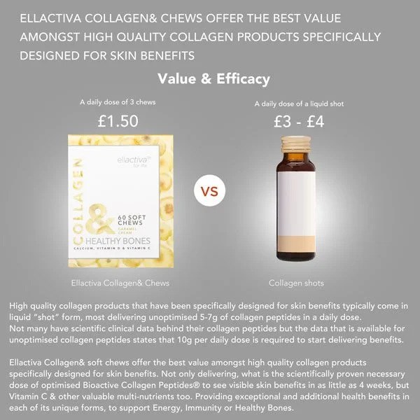Deliciously creamy, caramel-flavoured soft chews formulated with BIOACTIVE COLLAGEN PEPTIDES®, a readily absorbable form of collagen. Fuelled with high levels of Vitamin C to help maximise collagen synthesis, and with added calcium and Vitamin D to help maintain normal bones and nourish from within.
